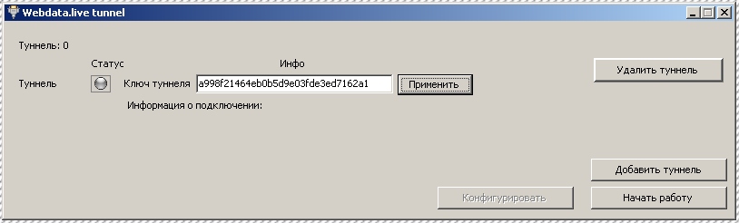 - Run Webdata.live tunnel, click the "add tunnel" button in the window that appears